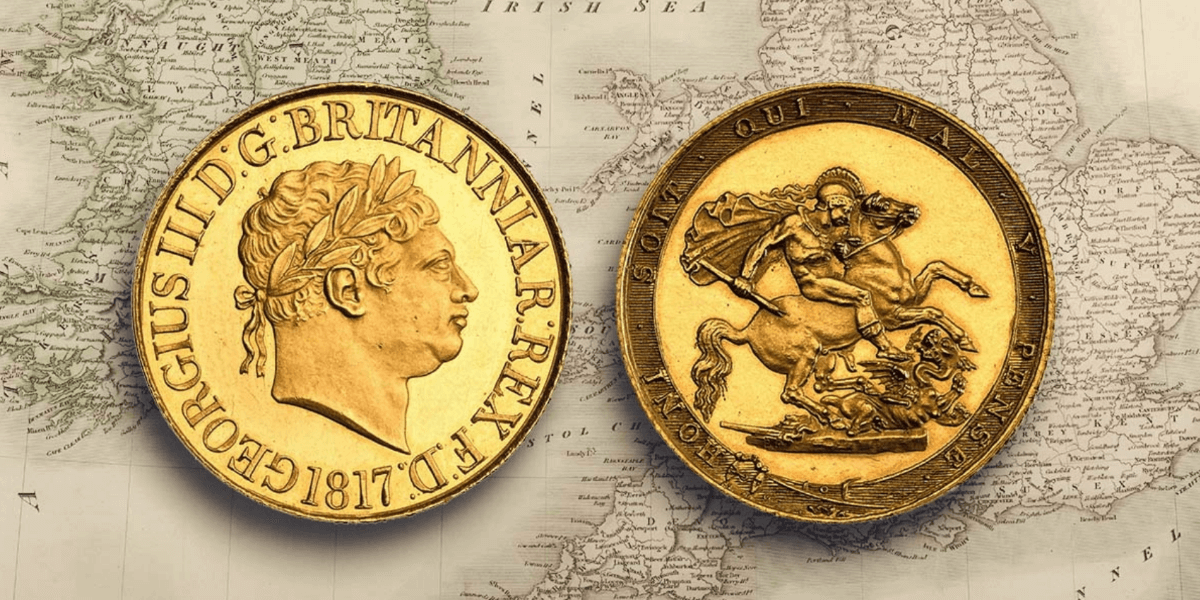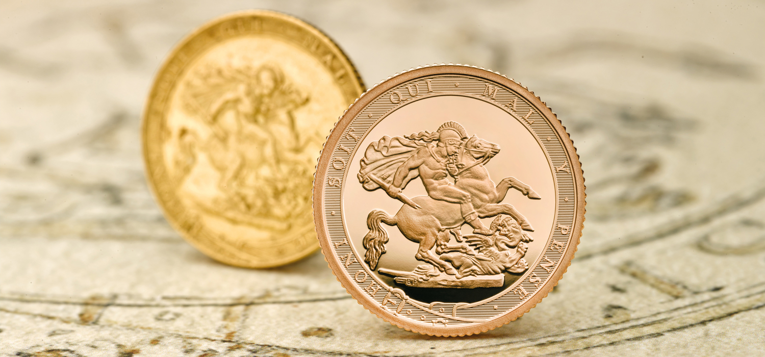 The gold Sovereign we know today was introduced in 1817. Its St George and the dragon design was created by Benedetto Pistrucci, an Italian gem engraver who had been encouraged to come to Britiain and work at the Royal Mint. The design, and its theme of good over evil, has become so firmly established that it is now considered virtually inseperable from the gold Sovereign and has ensured the survival of Pistrucci’s name and reputation.