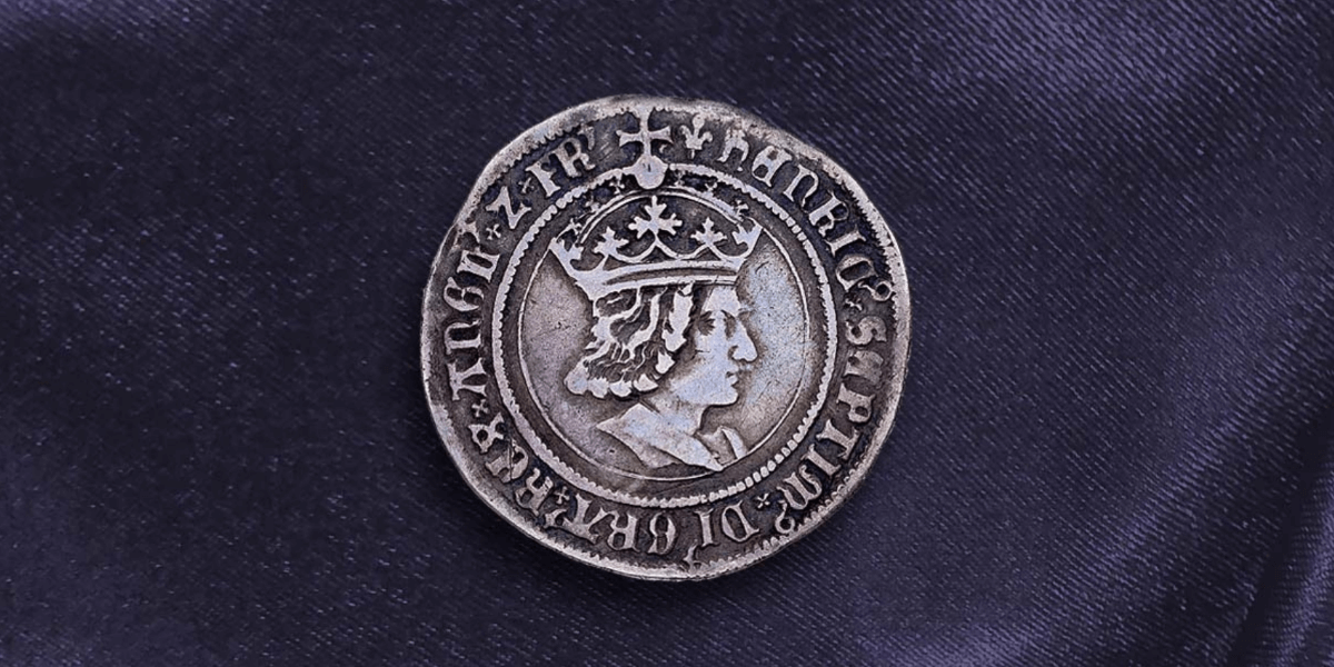 Henry VII changed this by issuing coins with a proper likeness and Henry VIII continued the practice on his coins, even allowing his image to be updated as he grew older. The first coins of his reign show him young and handsome, while later issues depict him as the instantly recognisable commanding and overweight monarch we are all familiar with.